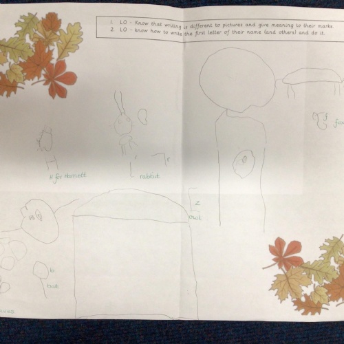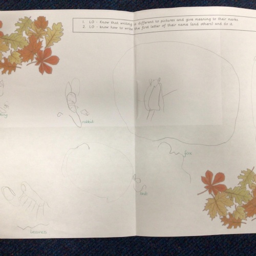 Expected Writing for End of Autumn - I can tell you what I have drawn and I can make marks on my picture and give meaning to them.